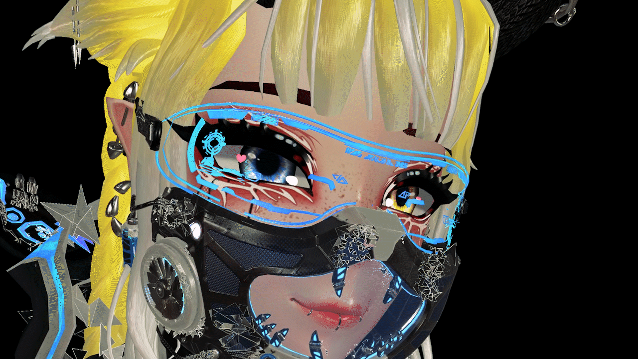 Ear/Tail wag, Hearts in eyes pulsing, Fans Spinning, Geometric dissolve running on clothes for more lively personality